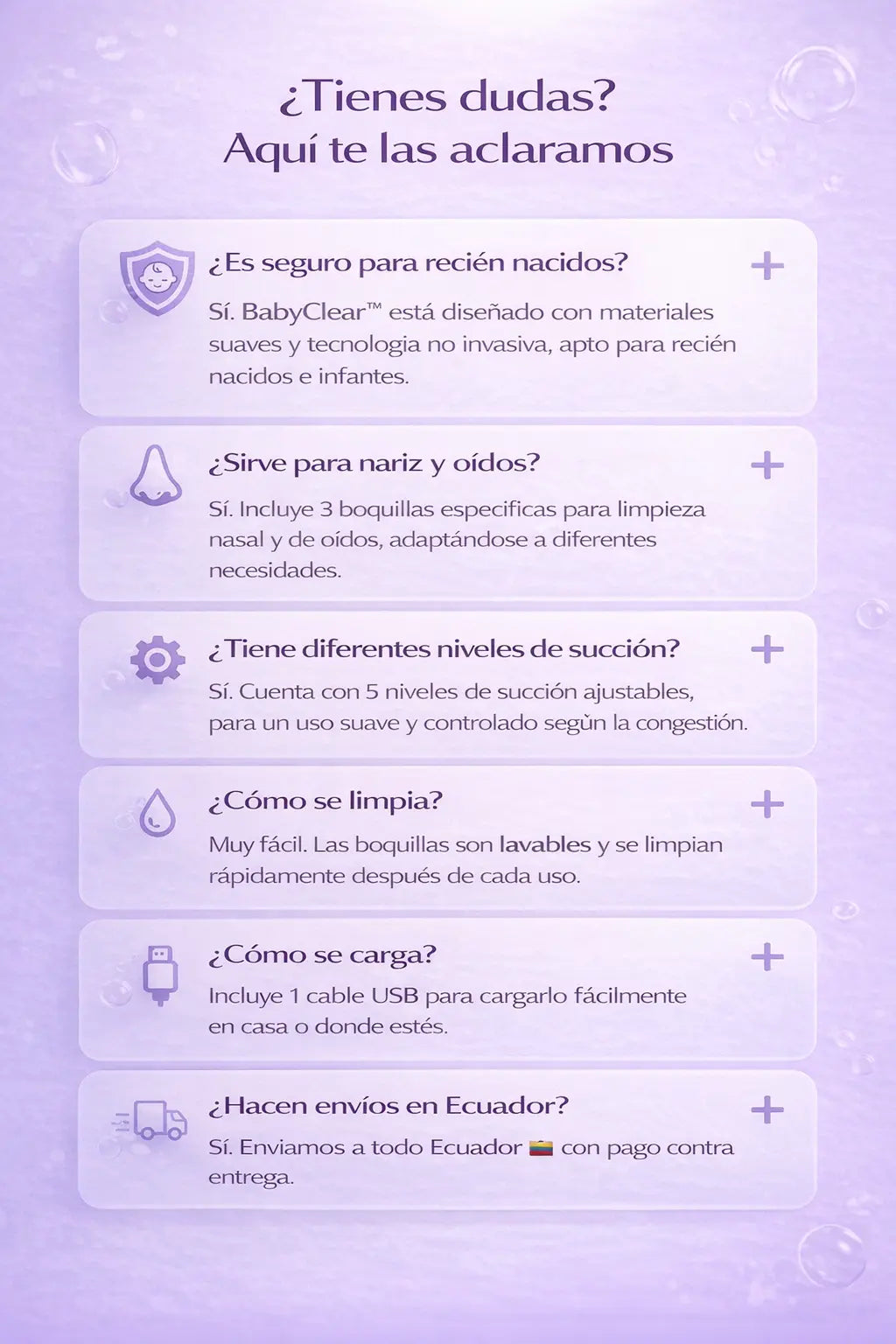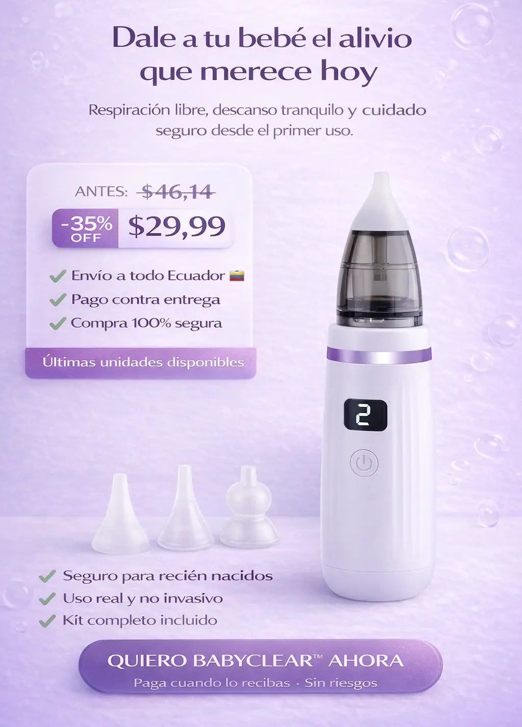 Muy util, limpia rapido la nariz de mi guagua sin hacerle daño.