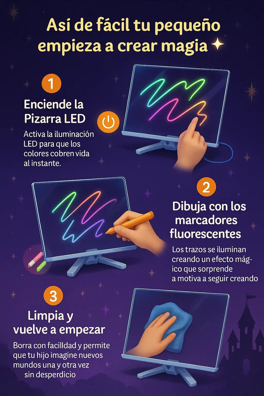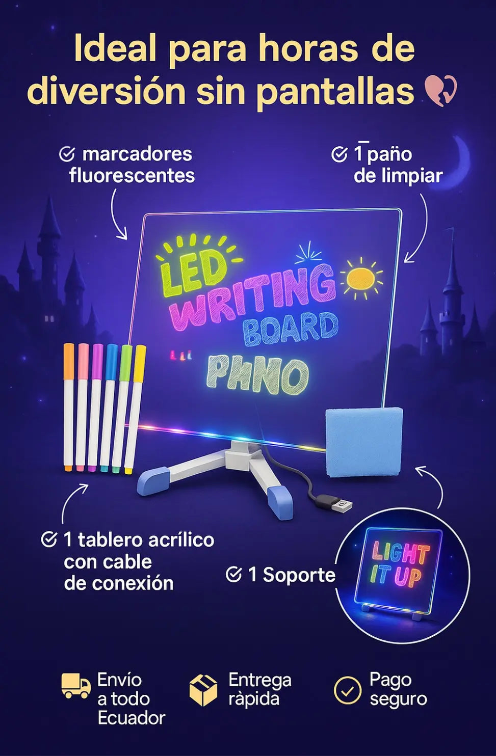 La plenna, es un éxito para los niños. Los dibujos se ven full bonitos con el efecto neón.