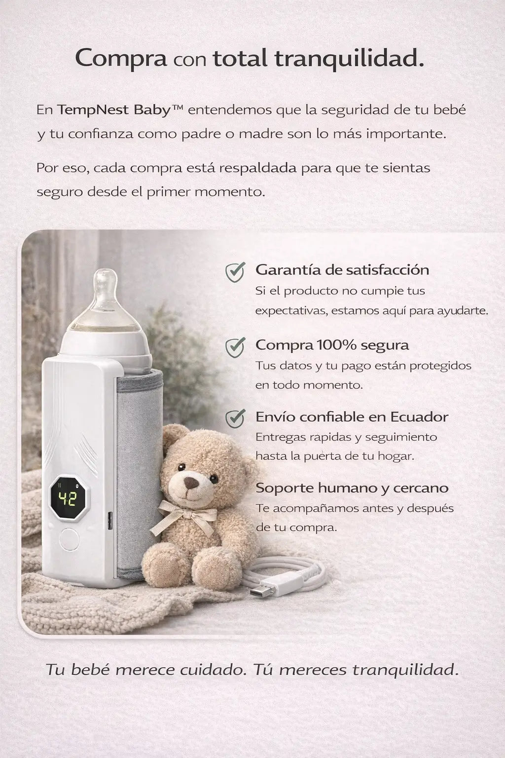 Mi bebé es bien delicado con la temperatura y con esto se queda tranquilo. Me gusta porque no es complicado y lo puedo llevar en la pañalera.