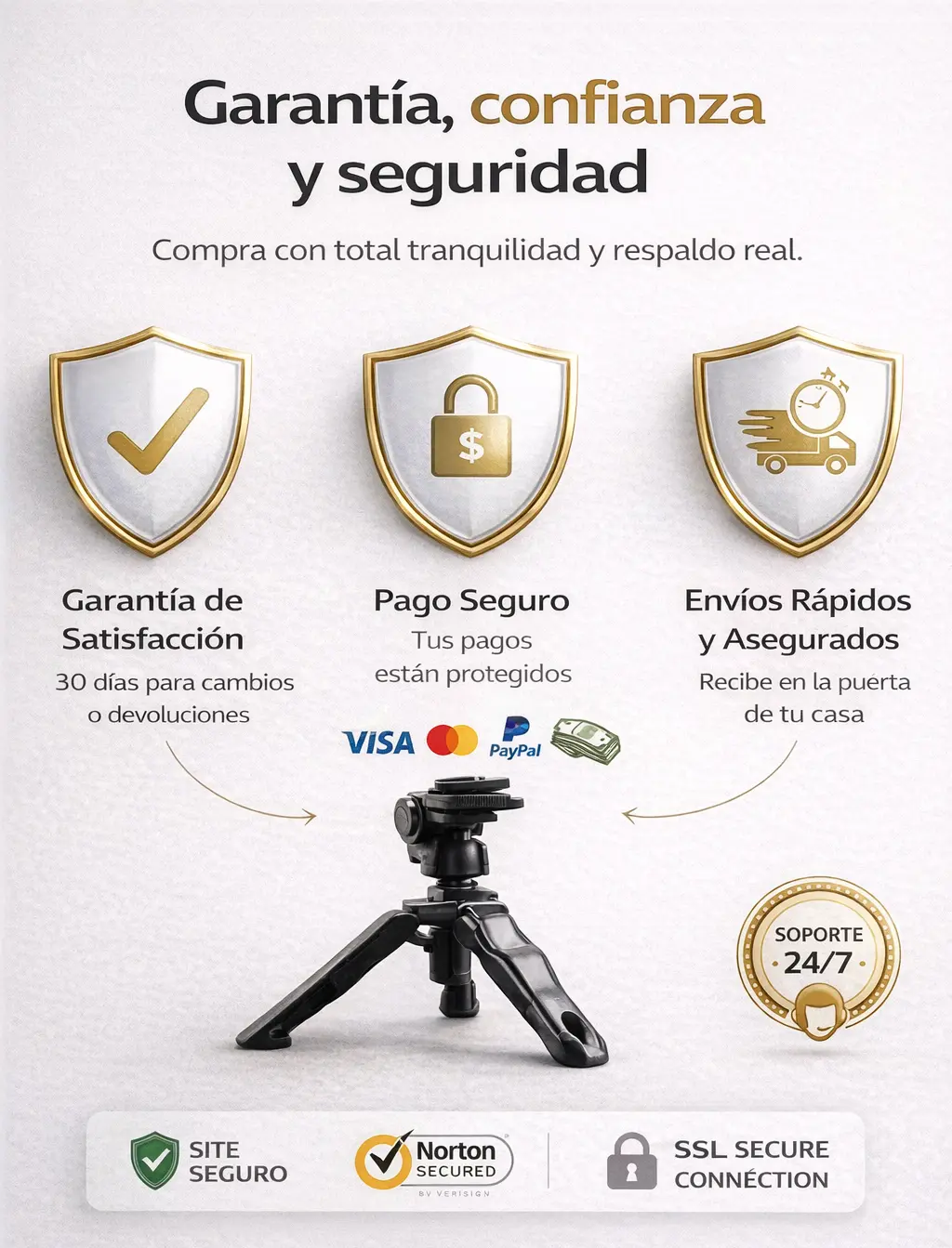 El trípode es firme y el control Bluetooth es súper práctico cuando uno graba solo.