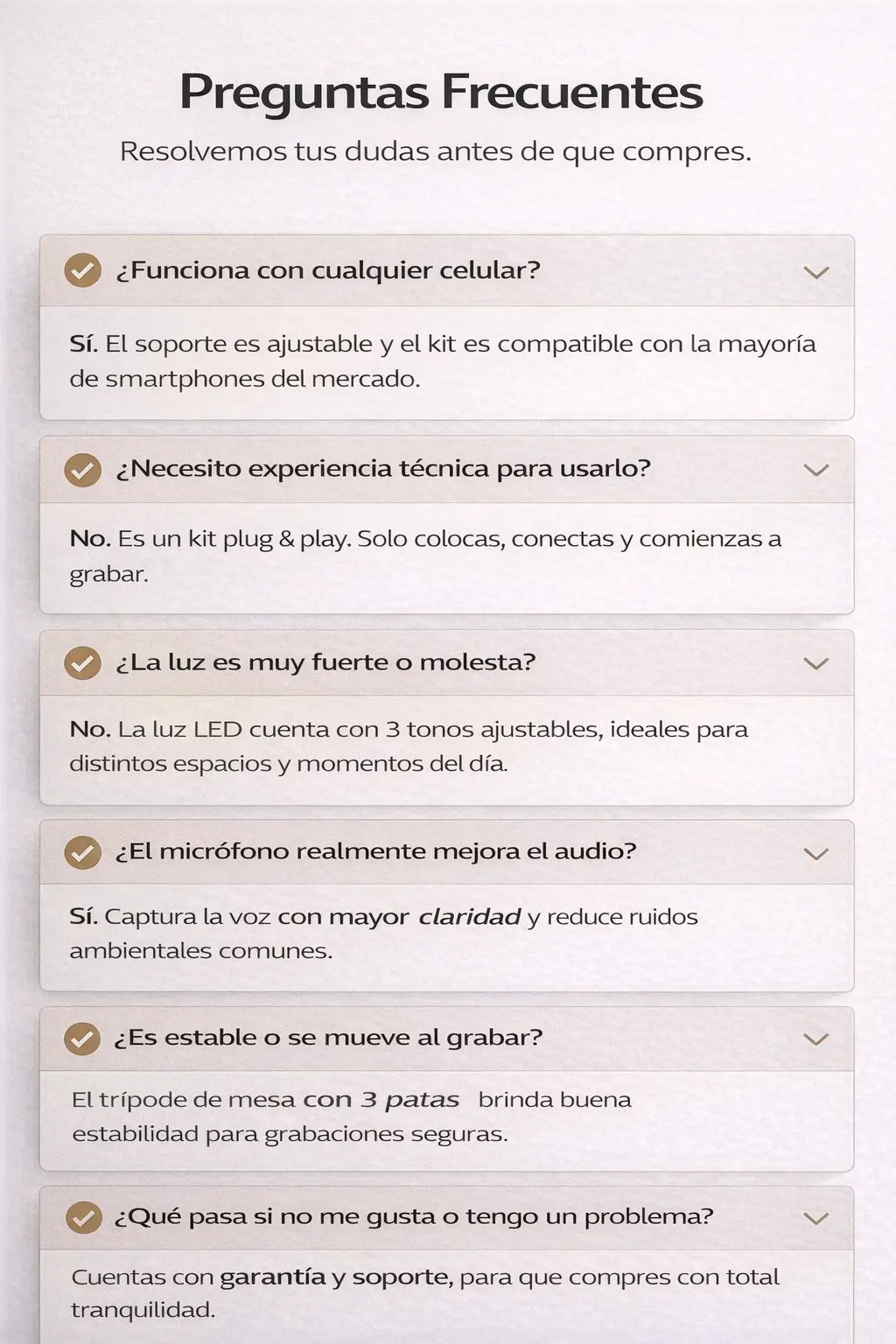 Lo compré para mis clases por Zoom y quedé contenta. El micrófono se escucha bien y la luz ayuda bastante.
